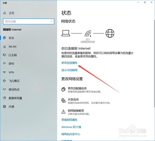 然后会弹出收集状况的设置弹框,选择此中的“更改毗连属性”,如图所示。