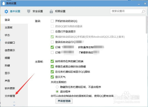 进入设置之后,默认是登录设置,选择下面的“文件办理”,如图所示。