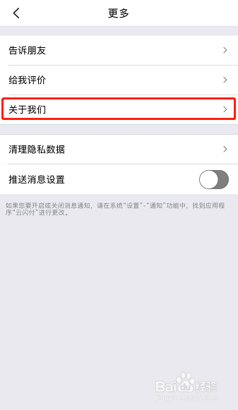 然后在更多本家儿页下找到关于我们一栏,同样的点进该栏!