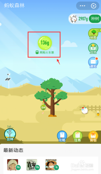 进入蚂蚁丛林页面,若是有能量,就呈现能量,好比:网购火车票。