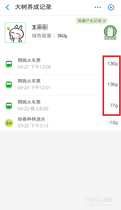 进入大树养当作记实页面,我们就可以看到火车票的能量。
