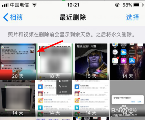 若是需要恢复多张照片,也可以在比来删除内,点击右上方的选择。