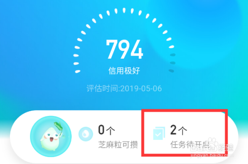 我们进入芝麻信用之后,可以看到有0个芝麻粒可攒,我们点击图案或者待开启使命,进入芝麻粒本家儿页。