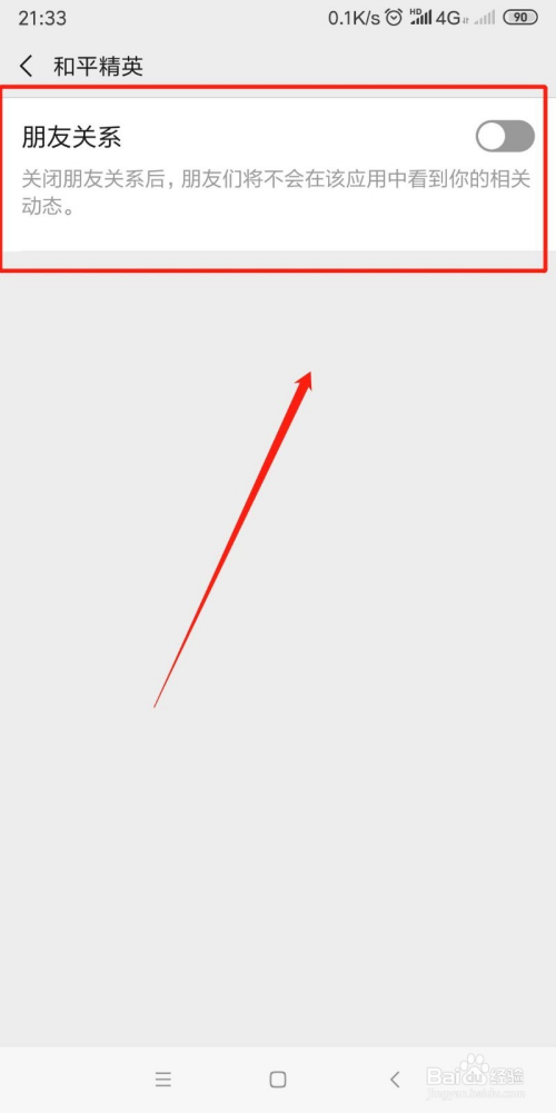 点击封闭伴侣关系右侧按钮,即可在玩和平精英游戏时对老友隐身