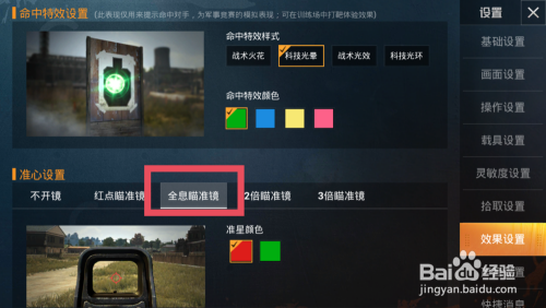 点击全息对准镜,可以设置全息准星的颜色。如图