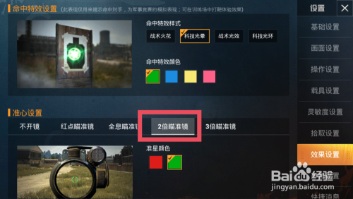 点击二倍对准镜,可以设置二倍镜的准星颜色。如图