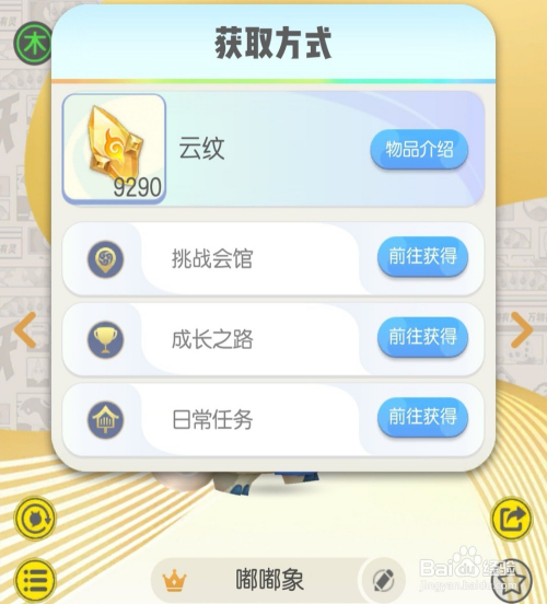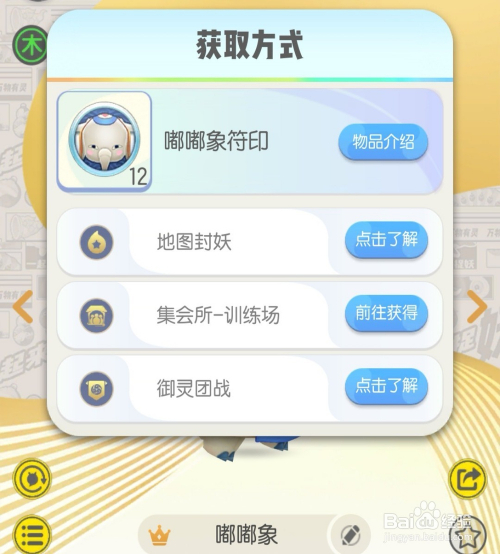 嘟嘟象可以经由过程获取必然数目的符印和云纹醒觉进化。此中符印可以经由过程地图封妖、会议所-练习场和御灵团战获得,而云纹可以经由过程挑战会馆、当作长之路和日常使命获取。