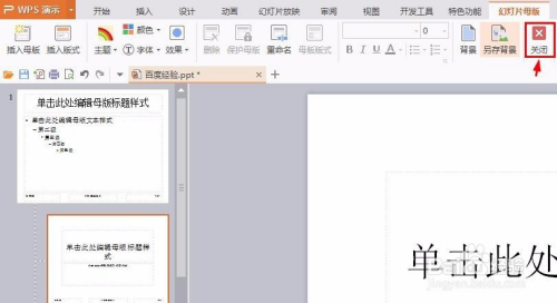 第七步:单击“封闭”按钮,退出母版编纂界面,完当作操作。