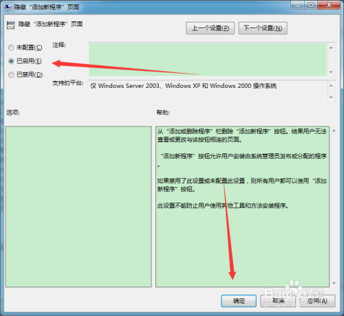 点选“已启用”,并点击确定按钮。