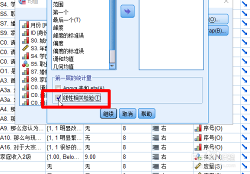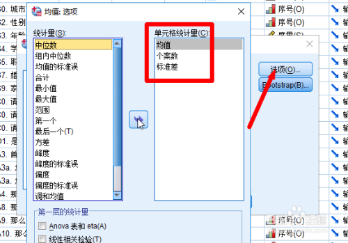 接着点击均值对话框右边的【选项】,然后在【单位格统计量】中可以增添或者削减要进行统计的统计量,