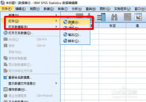 首先打开【文件-打开-数据】,然后打开要进行分组求平均数的数据