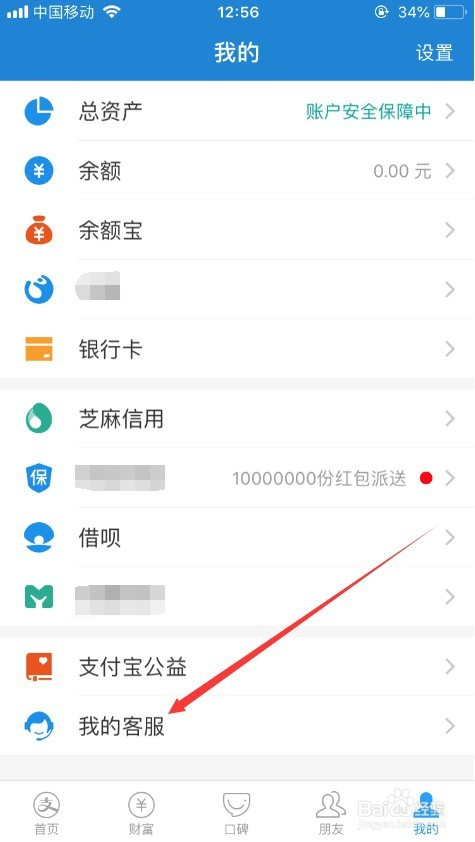 进入支付宝小我中间之后,页面滑到最下面,点击此中的“我的客服”,如图所示。