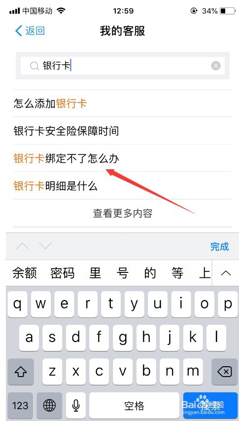 进入问题搜刮界面之后,直接在搜索框搜刮“银行卡绑定不了怎么办”,就会搜刮成果,如图所示。