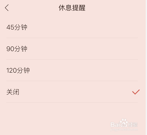 点击之后,就会进入到歇息提醒页面了,在该页面内显示了除了封闭之后的三个时候设置项。