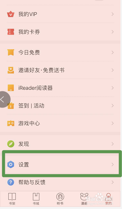 点击“设置”之后进入到掌阅的设置页面,在设置页面内点击下图所示的阅读设置选项。