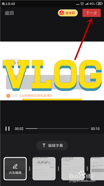选择好素材后就可以起头编纂视频了,若是不需要添加其他可以直接点击右上角的【下一步】。