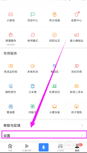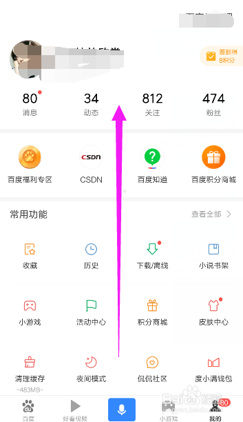 进入手机百度首页,在此页面下方点击右边的我的选项,如图所示
