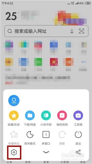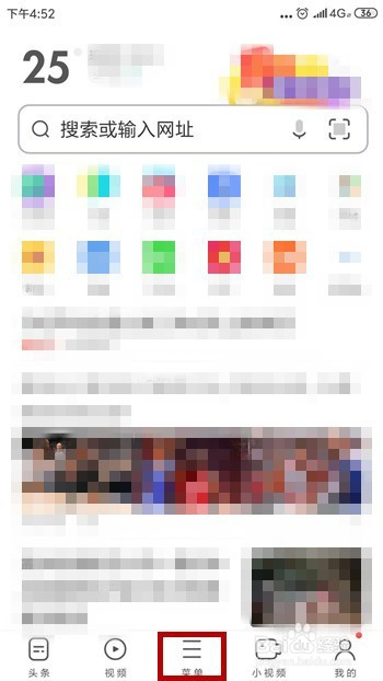 打开手机里的UC浏览器,在浏览器的首页点击底部的【菜单】选项。