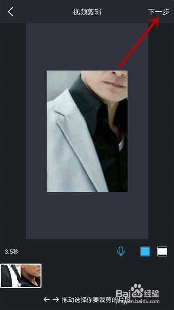 添加好导入的素材后需要对视频进行裁剪,裁剪完当作后点击右上角的【下一步】。