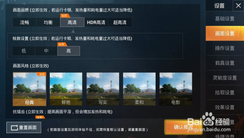 第一个可以设置画面品质,建议按照手机设置装备摆设去选择,否则会很卡。
