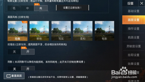 下一项就是抗锯齿和暗影设置,建议大师打开这两个设置。