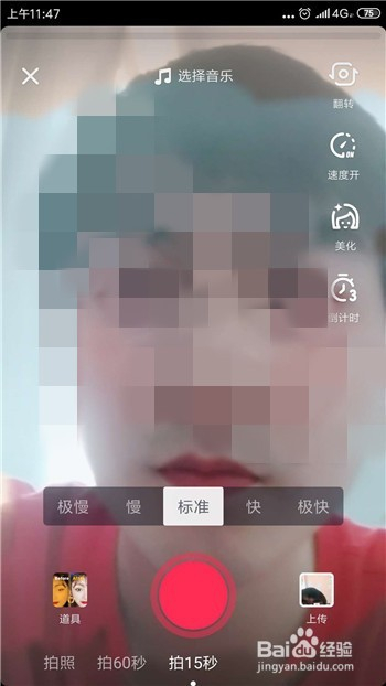 不竭的擦拭露出脸部后可以看到我们会变的很标致,点击起头录制这个视频。