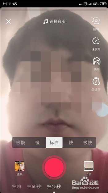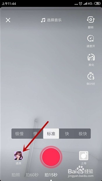 进入到抖音录制界面后需要利用道具,点击左下角的【道具】。