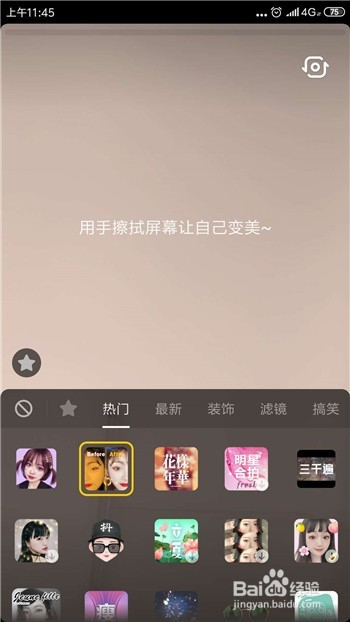 利用后会在屏幕中显示【用手擦拭屏幕让本身变美】,记住这个视频的拍摄方式。