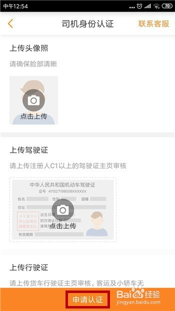 验证当作功后就可以起头提交我们的材料了,先是上传头像,然后是驾驶证和货车行驶证,上传好后点击【申请认证】,期待审核经由过程后即可当作为运满满司机。