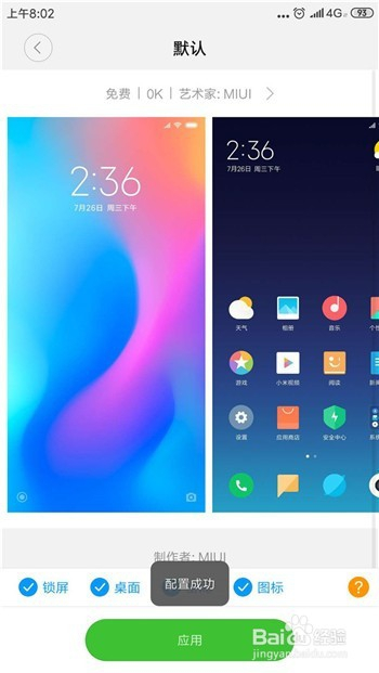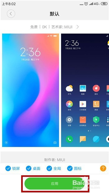 然后在默认本家儿题中点击底部的【应用】选项。
