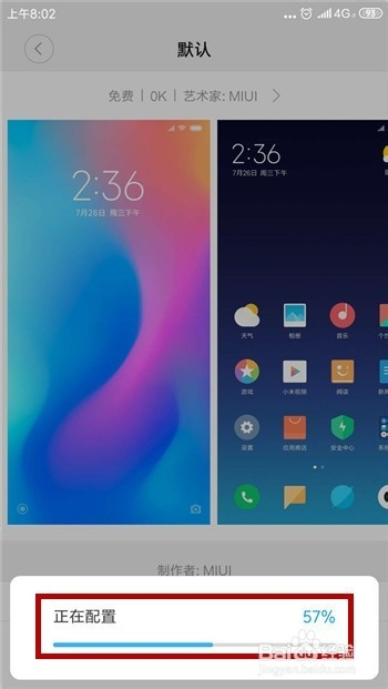 这样系统就会起头设置装备摆设默认的本家儿题,稍微期待一下设置装备摆设进度。