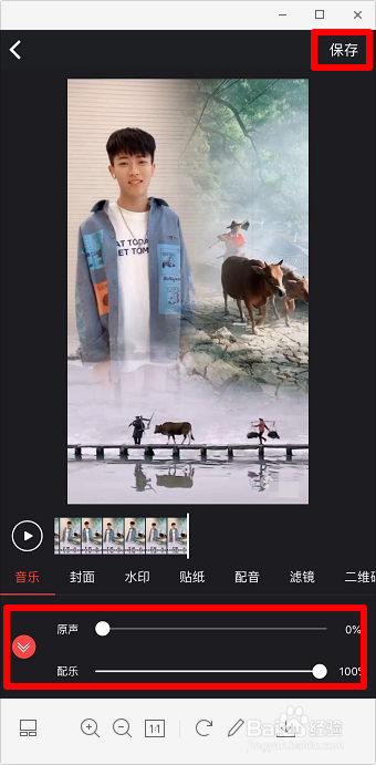 可以封闭原声或配乐,然后点击“保留”,当然,也可以设置封面等,最后发布到抖音。