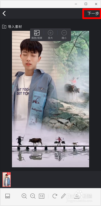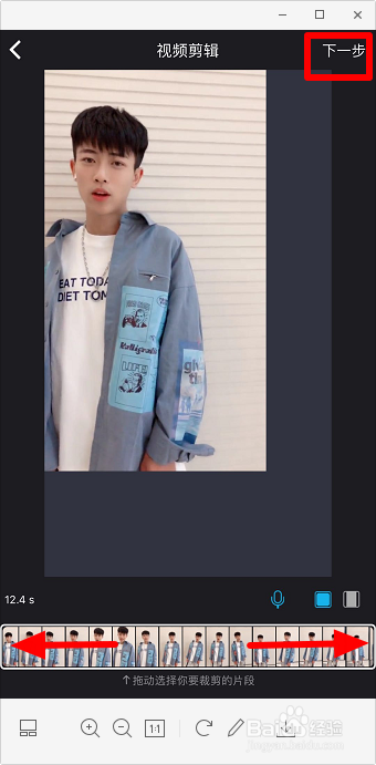 下方可以摆布拖动,调整视频显示的区域,点击“下一步”。