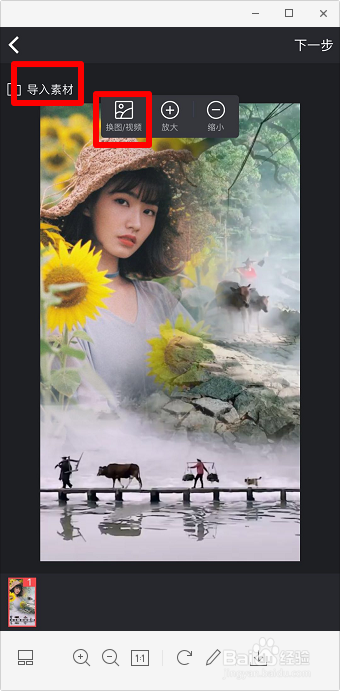 点击“导入素材”或点击图片的肆意位置,若是是导入素材,只能选择图片。