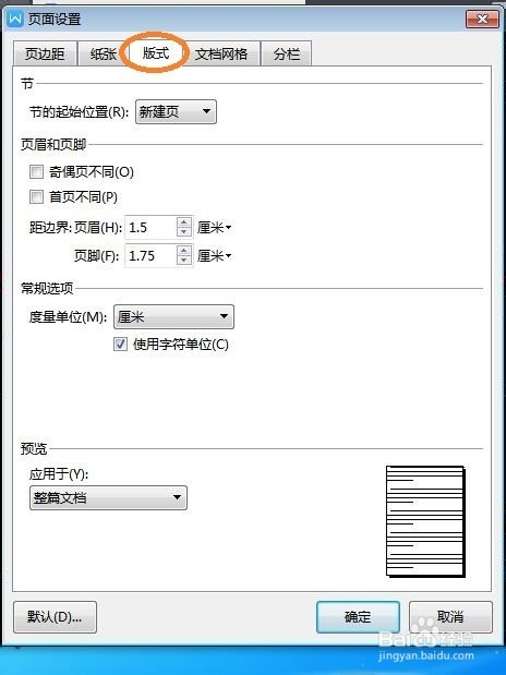 弹出【页面设置】窗口,可以对页面进行精准设置,下图是模认的页边距,可以在此根本长进行点窜与从头设置