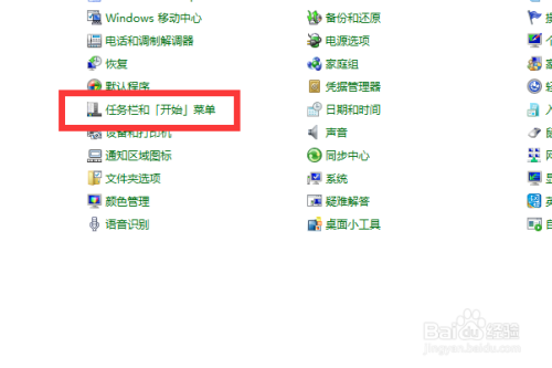 进入到节制面板中之后,我们找到使命栏和开始菜单,点击使命栏和开始菜单进入。