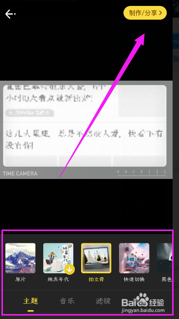 然后,起头建造,鄙人面选择你喜好的布景音乐,试听布景音乐完当作后,点击右上角的建造/分享,如图所示