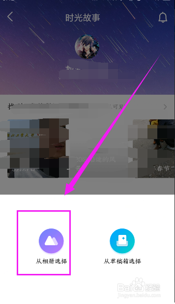 这时,你可以选择到相册中进行选择,也可以到草稿箱中进行选择,我这里选择图片,如图所示
