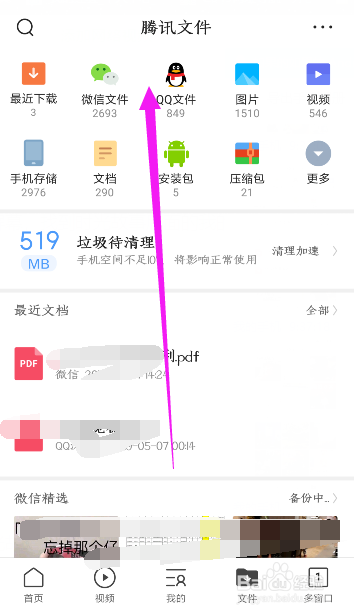 进入QQ浏览器首页,点击下面选项中的文件,如图所示