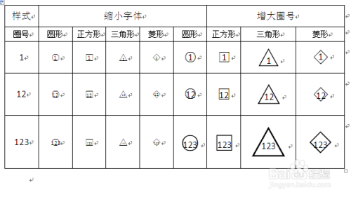 最后,用一张表来看一下,带圈字符的各类样式,发现有的字太小,看不清,有的字超出了圈圈,欠好看,有的圈太大,不适合,所以需要按照分歧场景利用分歧的带圈字符。