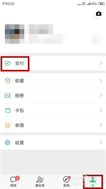 我们可以在微信里直接注册,打开微信后点击【我】,然后点击【支付】。