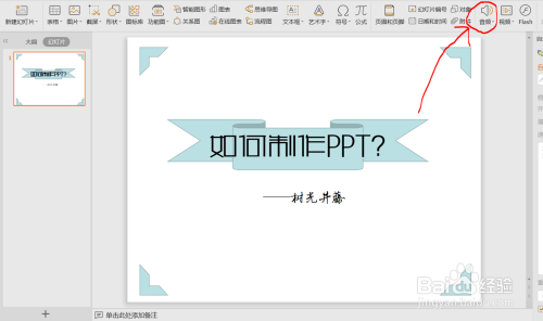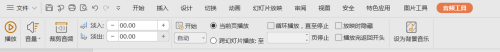 点击右上角的音频,插入音频今后,可以看到一个喇叭的图案,然后点击音频东西,可以对这段音频进行设置。