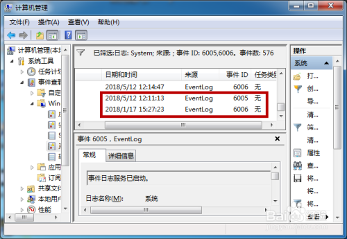 这样就可以筛选出我们所要的日记,我们下拉到最后一个,6006显示的就是我们的关机时候,这样就可以查看我们电脑的出厂时候了。