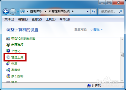 我们需要在节制面板中点击打开功能【办理东西】,如图所示。