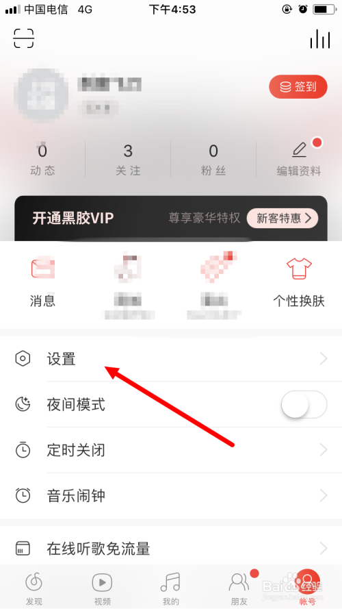 首先在手机上打开并登岸网易云App,并在首页面点击右下角的 账号 。