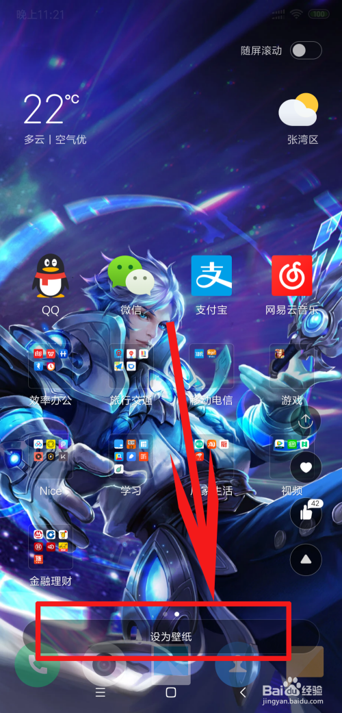 然后这里说一下在这里设置壁纸的益处,就是在设置的时辰,能提前预览桌面的图标在这张壁纸的显示下的样子
