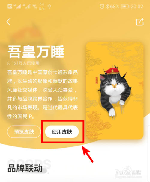 进入皮肤详情界面,选择页面中的利用皮肤的选项。