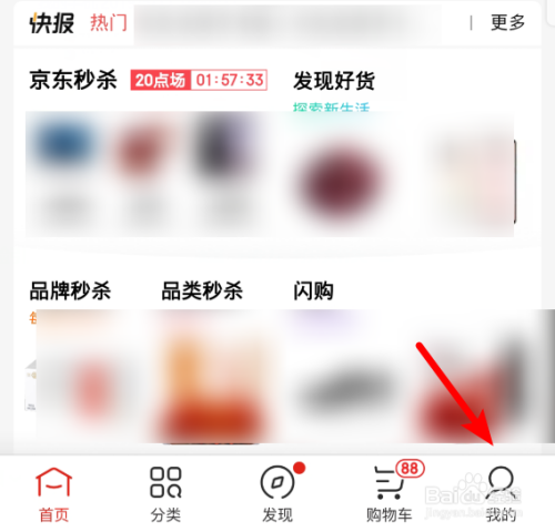 解锁手机打开手机的京东进入后,点击下方我的选项。