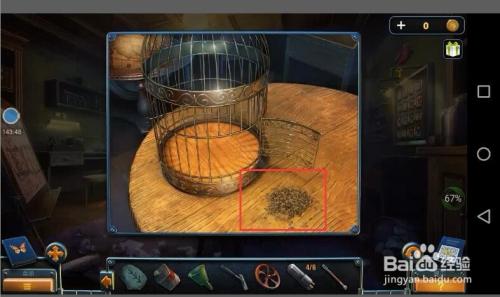 接着我们从暗室出来把鸟食放到鸟笼子旁,如图所示;