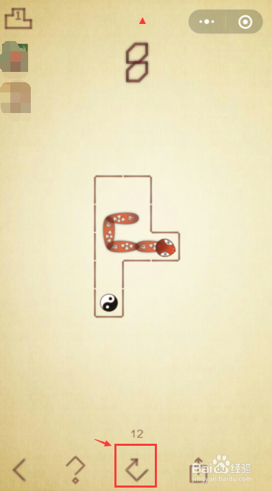 游戏过程中,若是蛇撞墙眯眼了,无法闯关,可以点击中心的箭头,从头起头此关。